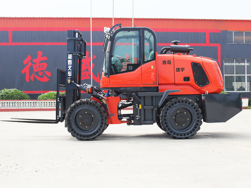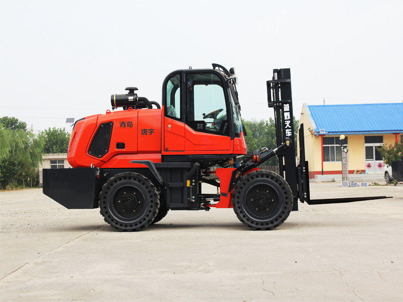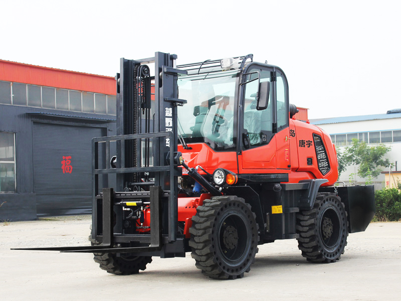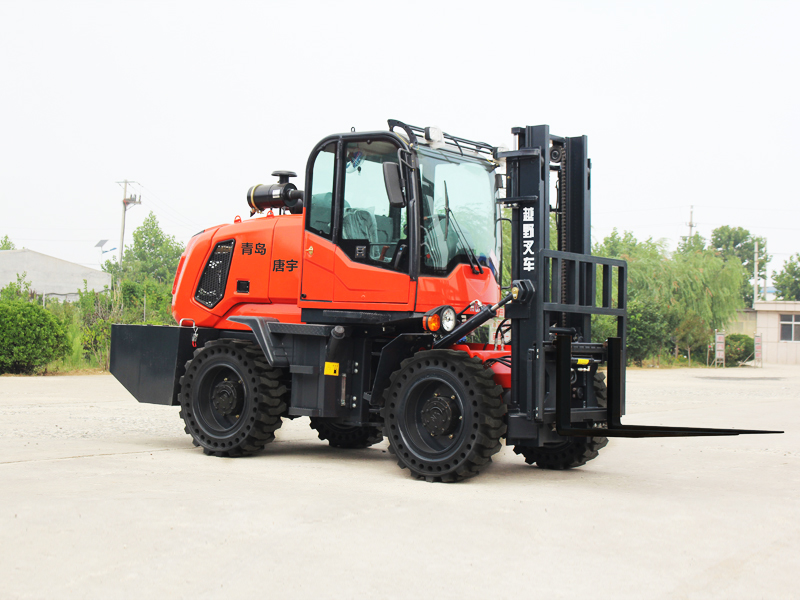 Cross-country forklift is a kind of engineering vehicle that can safely and efficiently carry out material loading, unloading, stacking and handling work on slopes and uneven ground; like ordinary forklifts, it can be equipped with forks or replace more kinds of attachments to improve its work efficient. With a full-time four-wheel drive, it greatly increases the power of the forklift, so that the forklift can safely and efficiently carry out material loading, unloading, stacking and handling operations on sand and rugged ground. It has good off-road performance, passing performance and Greater traction. Cross-country forklifts are mainly used for field projects such as urban construction sites, pipeline laying, park development, mountain forest areas, and the loading and unloading of containers in terminal cargo yards.