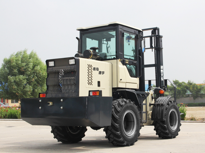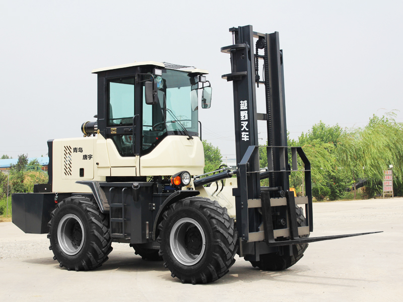 Cross-country forklift is a kind of engineering vehicle that can safely and efficiently carry out material loading, unloading, stacking and handling work on slopes and uneven ground; like ordinary forklifts, it can be equipped with forks or replace more kinds of attachments to improve its work efficient. With a full-time four-wheel drive, it greatly increases the power of the forklift, so that the forklift can safely and efficiently carry out material loading, unloading, stacking and handling operations on sand and rugged ground. It has good off-road performance, passing performance and Greater traction. Cross-country forklifts are mainly used for field projects such as urban construction sites, pipeline laying, park development, mountain forest areas, and the loading and unloading of containers in terminal cargo yards.